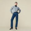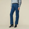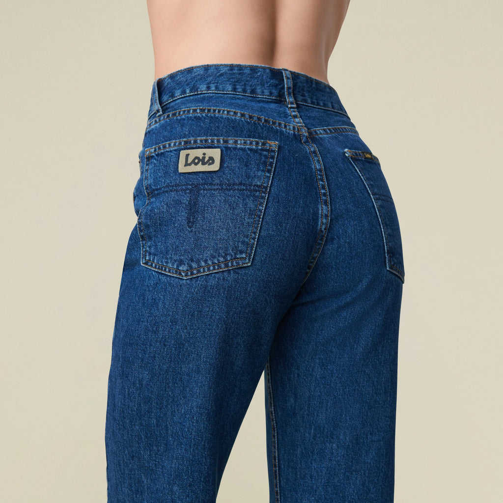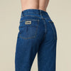 De Dana is onze losse dad jeans. Heeft een middelhoge taille, relaxte pasvorm, rechte pijpen en een kortere lengte.