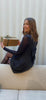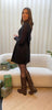 Dit zwart a-lijn jurkje heeft een mooi strikdetail op de rug met ritsluiting.