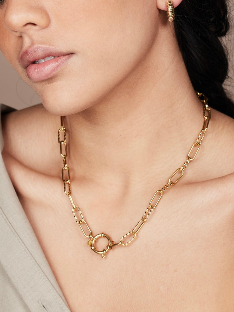 Deze grove schakelketting is afgewerkt met een mooi rond slot. De grove schakels hebben een lengte van 17mm. De lengte van deze ketting is 18 inch.