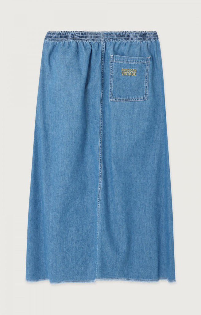 De lange rok voor dames van Izeway valt op door zijn soepele blauwe denim en zijn authentieke model dat natuurlijk valt. Hij heeft een elastische tailleband met een trekkoord aan de binnenkant en biedt comfort en gemak voor dagelijks gebruik. De opgestikte achterzak met geborduurd ecru logo zorgt voor een subtiele touch. De rok is gemakkelijk aan te trekken en past perfect bij een T-shirt of een trui, waardoor hij geschikt is voor elke gelegenheid.