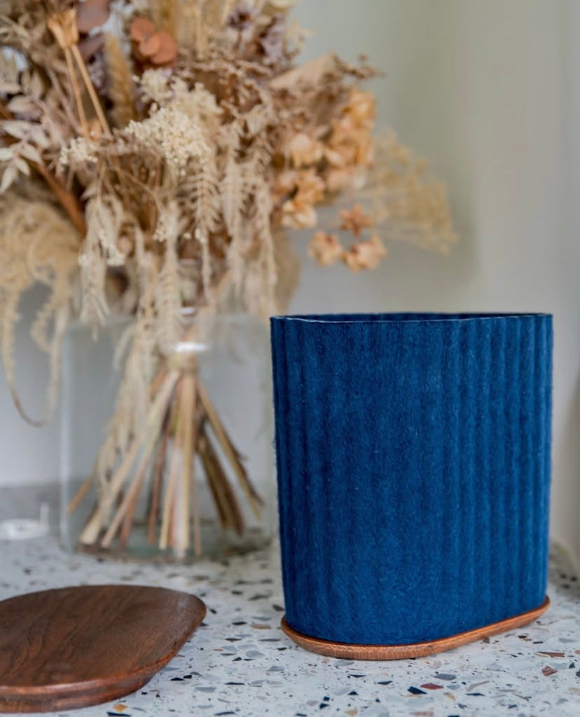 De Quyet Home is een verfijnd designobject, vervaardigd uit gerecycleerd hout en vilt en verkrijgbaar in drie tijdloze kleuren: Burgundy, Light Grey en Midnight Blue.