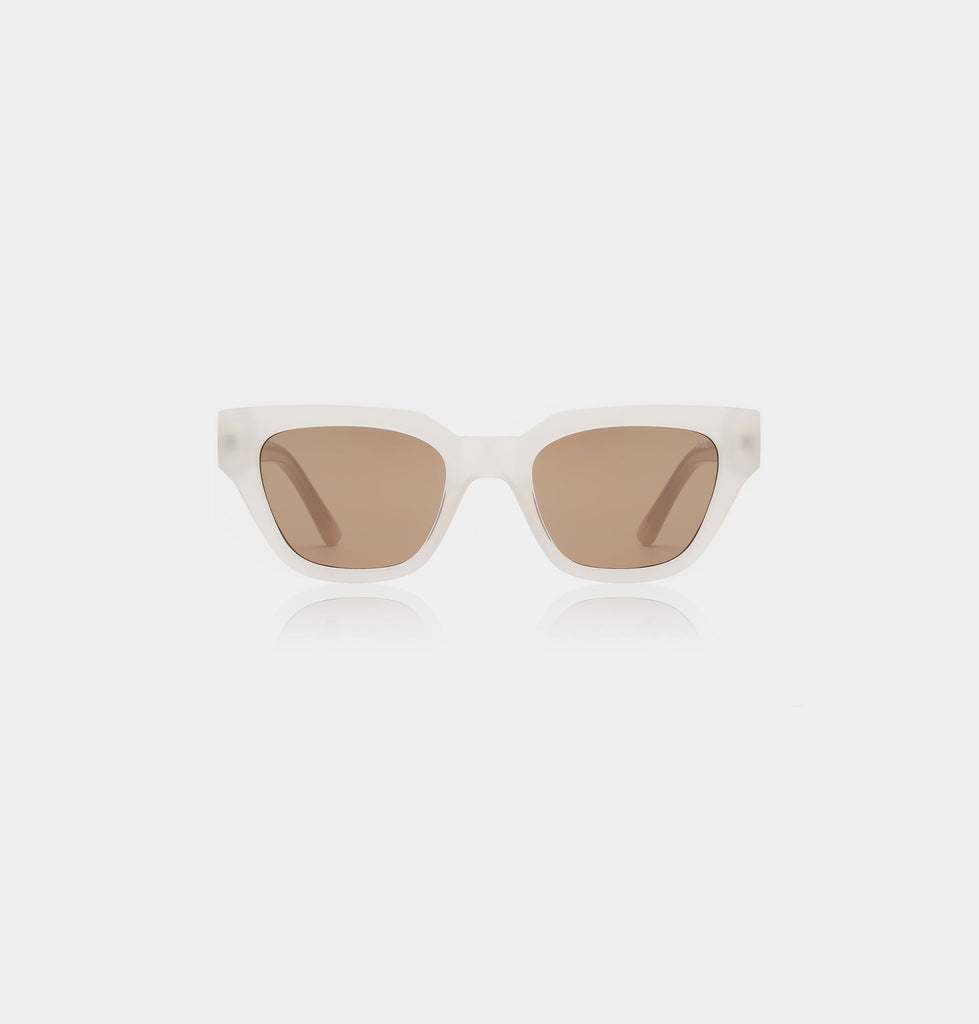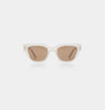 De Kaws Cream Bone is een opvallende zonnebril met een strak profiel, waarbij de vorm de hoofdrol speelt. Hij oogt modern en is wat meer een statement, maar behoudt tegelijkertijd de balans die hem geschikt maakt voor dagelijks gebruik. De Kaws is de perfecte keuze als je een zonnebril zoekt die karakter toevoegt zonder overdreven te zijn.