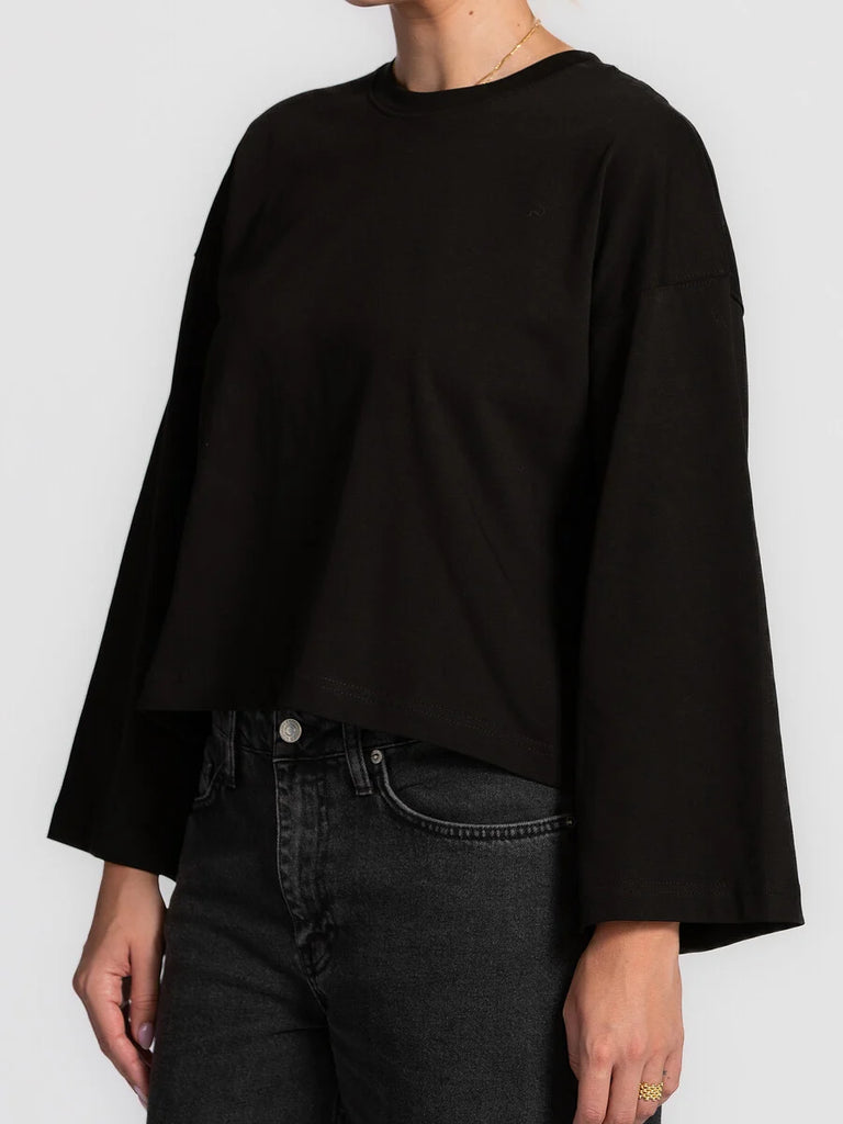 Ontdek de veelzijdigheid van deze boxy fit T-shirt met lange mouwen - de ultieme goede basic. De boxy pasvorm biedt comfort en een moeiteloze stijl, terwijl de lange mouwen het perfect maken voor elk seizoen.