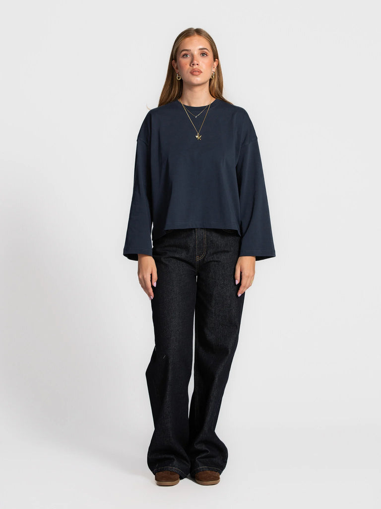 Dit najaar is navy het nieuwe zwart! De Aline longsleeve is een shirt dat je eindeloos kan mixen en matchen voor een casual vrijdag op kantoor of lazy Sunday. Een essential voor je garderobe die naadloos tussen werk en vrije tijd schakelt.
