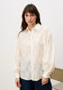 Rechte klassieke overhemdkraag met losse pasvorm. In een transparante stof met een kantachtig effect en ton-sur-ton paillettenborduursel. Heeft lange, pofmouwen met geplooide manchetten, verborgen knoopsluiting aan de voorkant.